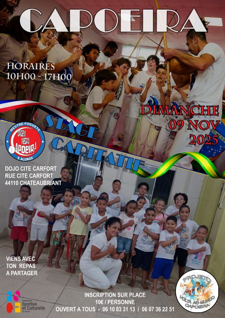 ➡️ Toute la journée des Ateliers enfants sont prévus – Des mini‑capoeiristes en herbe, des rires, des pirouettes et surtout beaucoup de bonne humeur avec l’ambiance brésilienne évidemment !